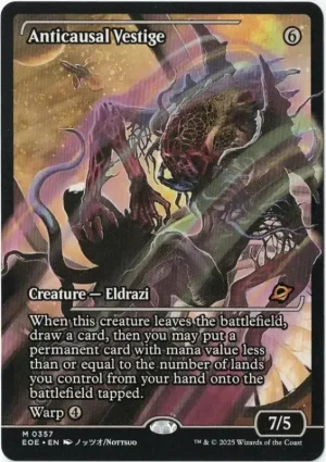 Void — Whenever Alpharael attacks, if a nonland permanent left the battlefield this turn or a spell was warped this turn, defending player loses half their life, rounded up.