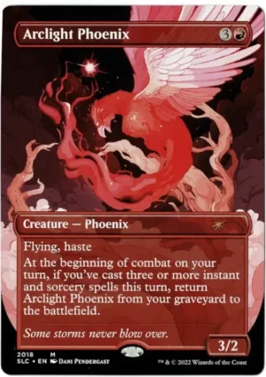 At the beginning of combat on your turn, if you’ve cast three or more instant and sorcery spells this turn, return Arclight Phoenix from your graveyard to the battlefield.