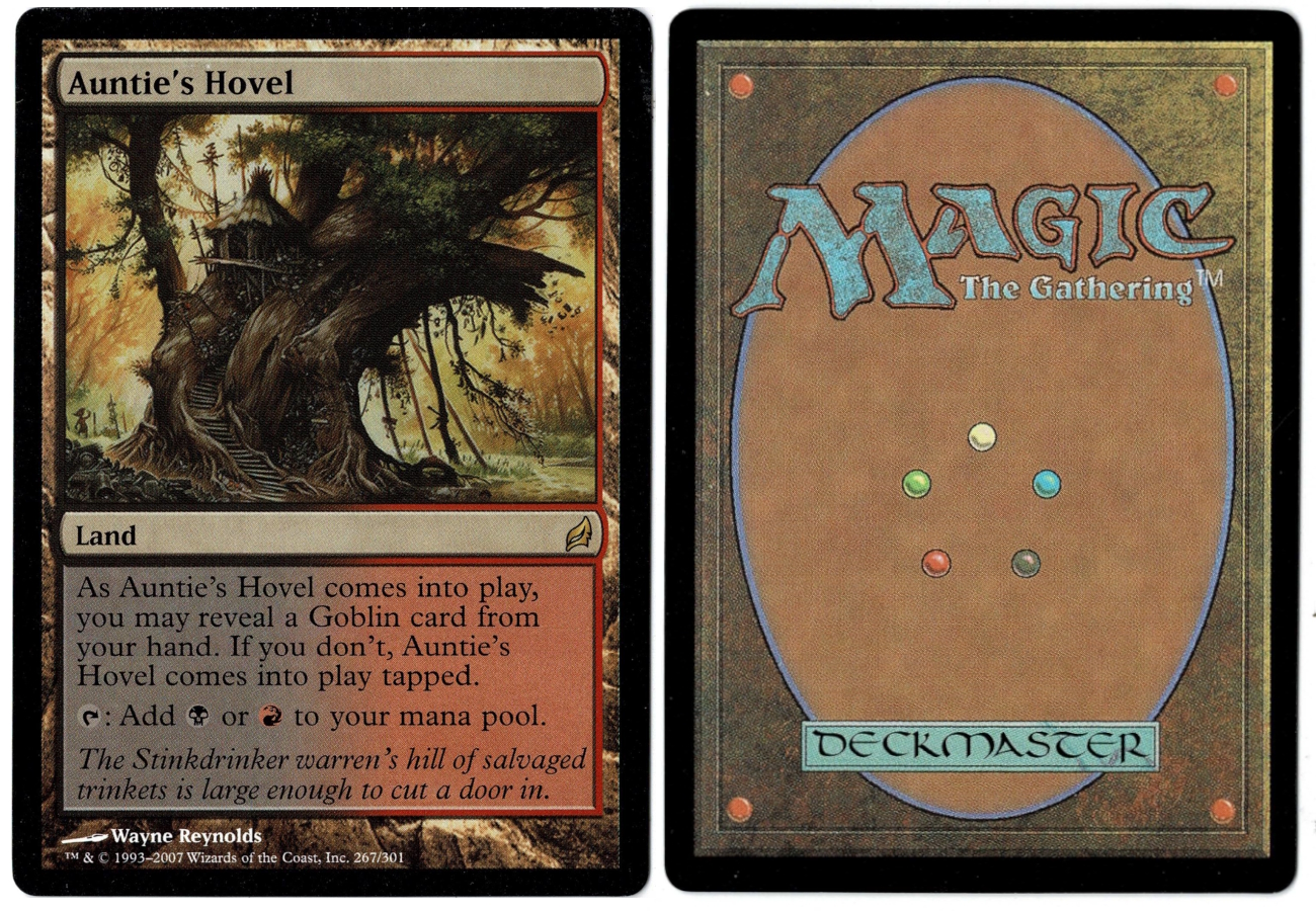 As Auntie’s Hovel comes into play, you may reveal a Goblin card from your hand. If you don’t, Auntie’s Hovel comes into play tapped.