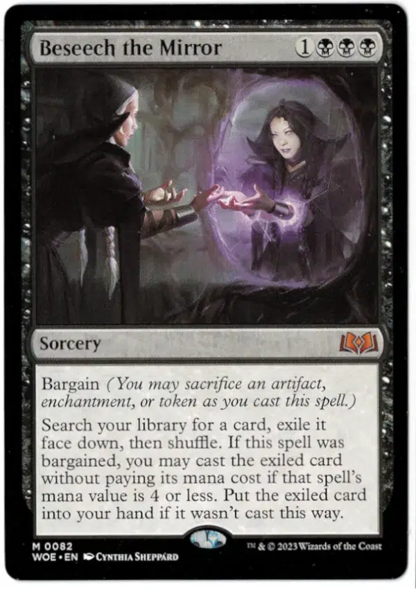 Search your library for a card, exile it face down, then shuffle. If this spell was bargained, you may cast the exiled card without paying its mana cost if that spell’s mana value is 4 or less. Put the exiled card into your hand if it wasn’t cast this way.