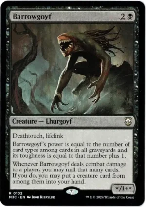 Barrowgoyf’s power is equal to the number of card types among cards in all graveyards and its toughness is equal to that number plus 1.
