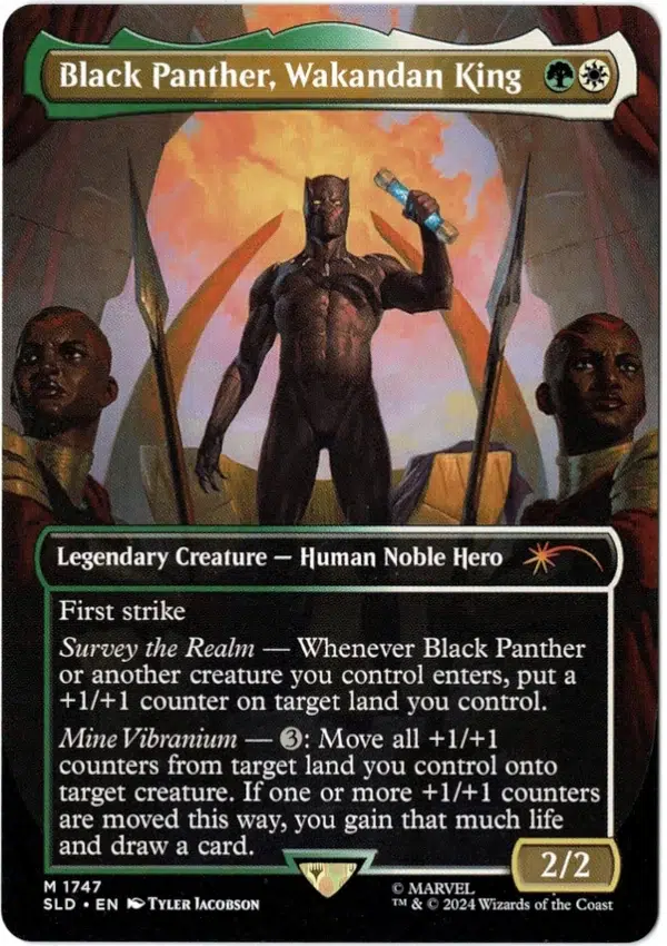 Survey the Realm — Whenever Black Panther or another creature you control enters, put a +1/+1 counter on target land you control.