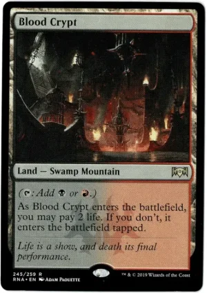 As Blood Crypt enters the battlefield, you may pay 2 life. If you don’t, it enters the battlefield tapped.