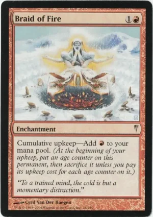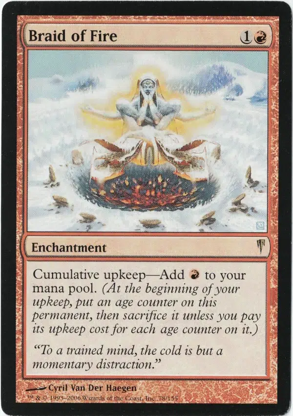 Cumulative upkeep—Add R to your mana pool. (At the beginning of your upkeep, put an age counter on this permanent, then sacrifice it unless you pay its upkeep cost for each age counter on it.)