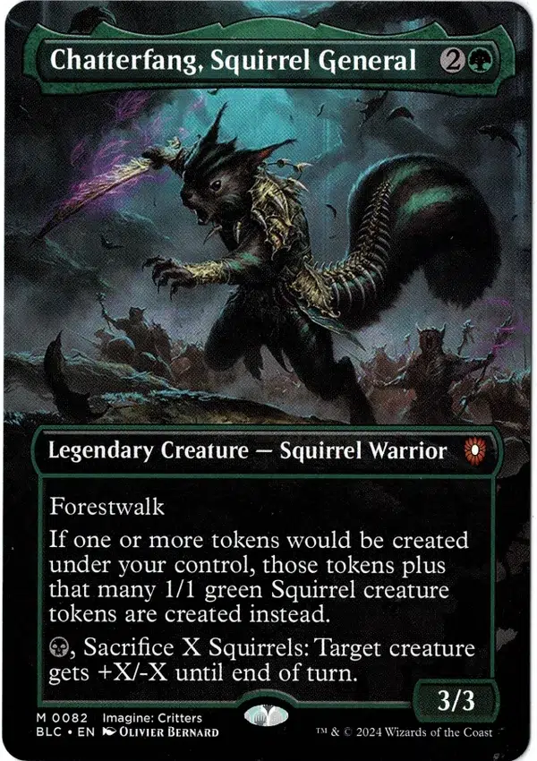 If one or more tokens would be created under your control, those tokens plus that many 1/1 green Squirrel creature tokens are created instead.