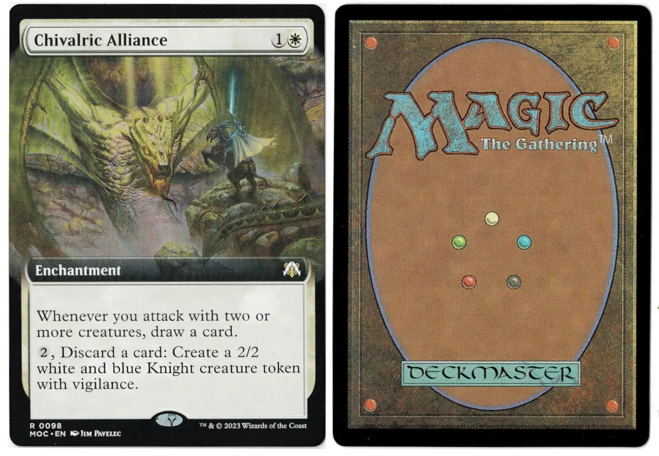 2, Discard a card: Create a 2/2 white and blue Knight creature token with igilance.