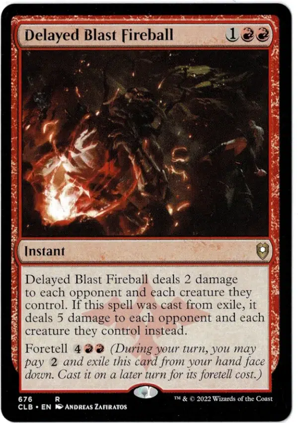 Delayed Blast Fireball deals 2 damage to each opponent and each creature they control. If this spell was cast from exile, it deals 5 damage to each opponent and each creature they control instead.