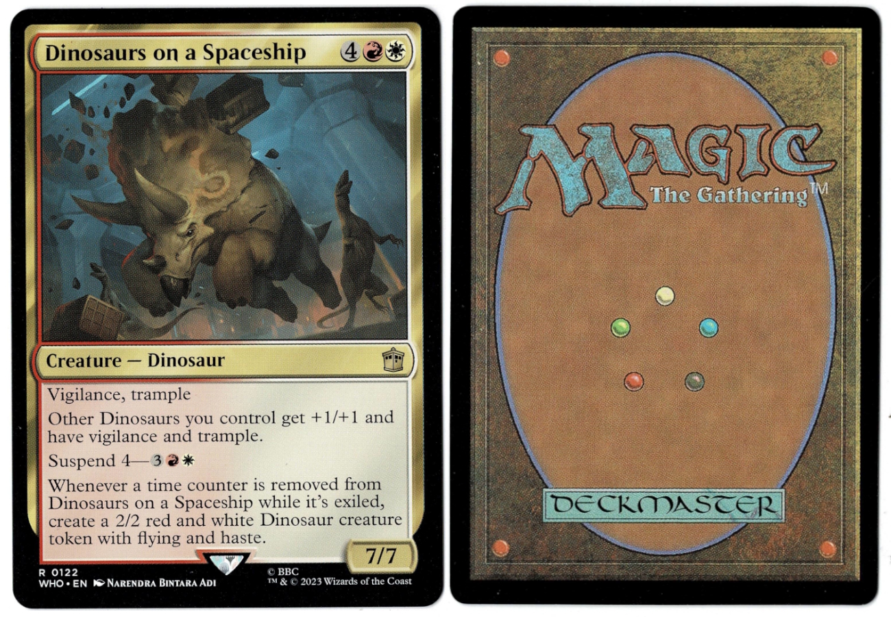Dinosaurs on a Spaceship from Universes Beyond: Doctor Who Magic the Gathering Proxy