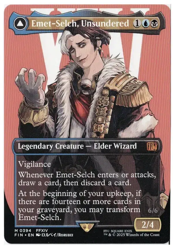 At the beginning of your upkeep, if there are fourteen or more cards in your graveyard, you may transform Emet-Selch.