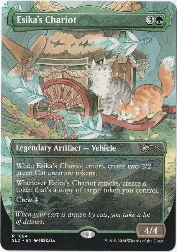 When Esika’s Chariot enters, create two 2/2 green Cat creature tokens.