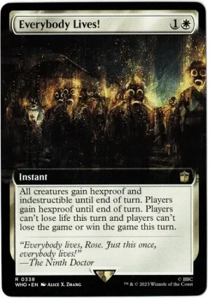 All creatures gain hexproof and indestructible until end of turn. Players gain hexproof until end of turn. Players can’t lose life this turn and players can’t lose the game or win the game this turn.