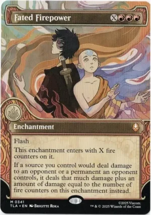 If a source you control would deal damage to an opponent or a permanent an opponent controls, it deals that much damage plus an amount of damage equal to the number of fire counters on this enchantment instead.