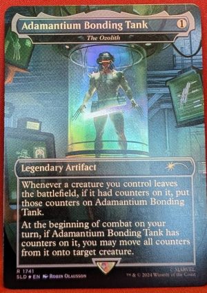 At the beginning of combat on your turn, if Adamantium Bonding Tank has counters on it, you may move all counters from it onto target creature.