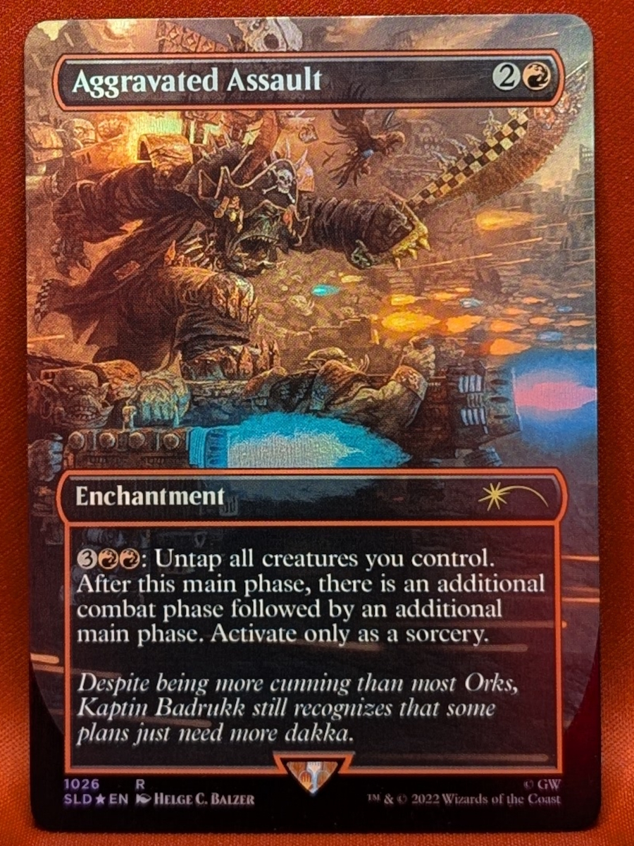 FOIL Aggravated Assault (Borderless) from Secret Lair Drop Series Magic the Gathering Proxy