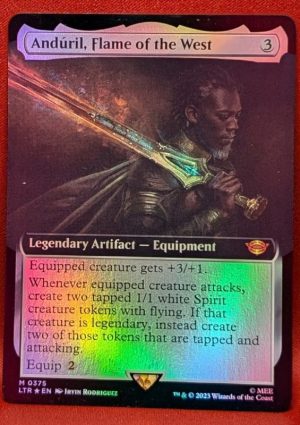 Whenever equipped creature attacks, create two tapped 1/1 white Spirit creature tokens with flying. If that creature is legendary, instead create two of those tokens that are tapped and attacking.