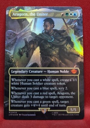 Whenever you cast a red spell, Aragorn, the Uniter deals 3 damage to target opponent.