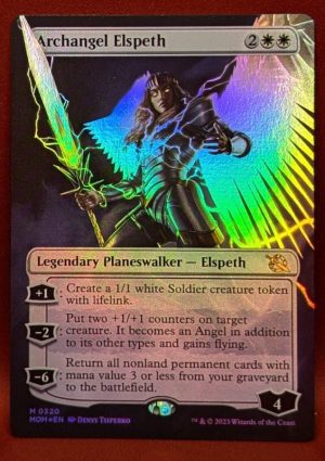 [-2]: Put two +1/+1 counters on target creature. It becomes an Angel in addition to its other types and gains flying.