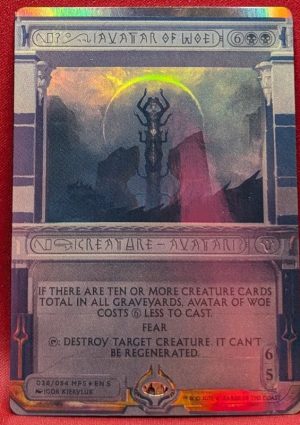If there are ten or more creature cards in all graveyards, Avatar of Woe costs 6 less to cast.