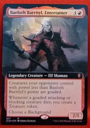 Creatures your opponents control with power less than Baeloth Barrityl’s power are goaded.