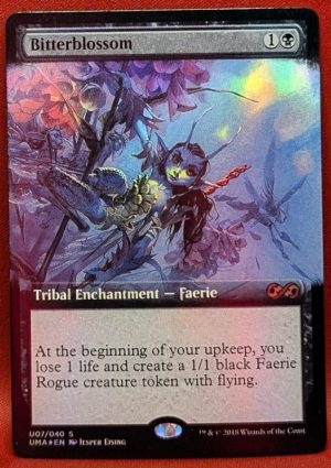 At the beginning of your upkeep, you lose 1 life and create a 1/1 black Faerie Rogue creature token with flying.
