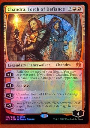 [-3]: Chandra, Torch of Defiance deals 4 damage to target creature.