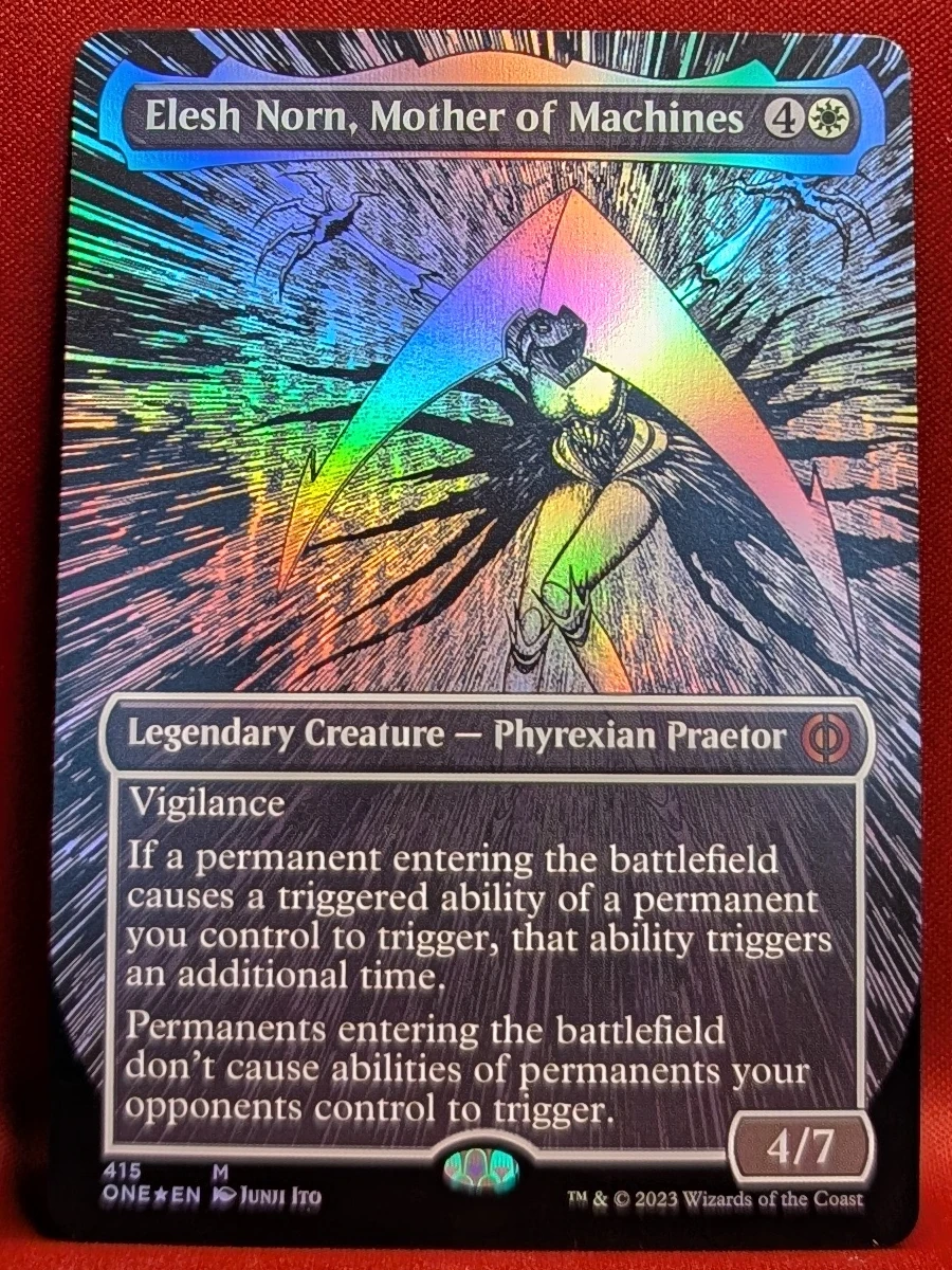 FOIL Elesh Norn, Mother of Machines (Borderless) from Phyrexia: All Will Be One Magic the Gathering Proxy