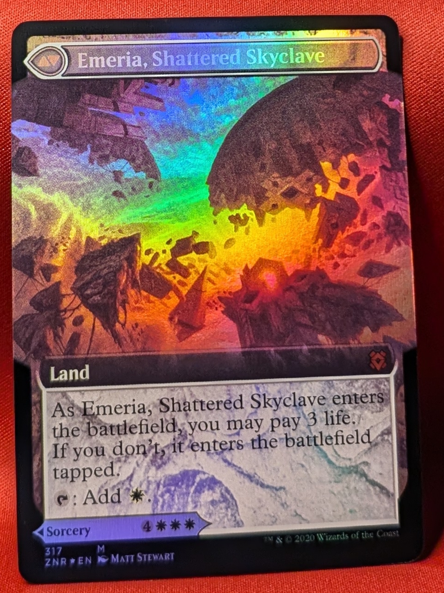 As Emeria, Shattered Skyclave enters the battlefield, you may pay 3 life. If you don’t it enters the battlefield tapped.