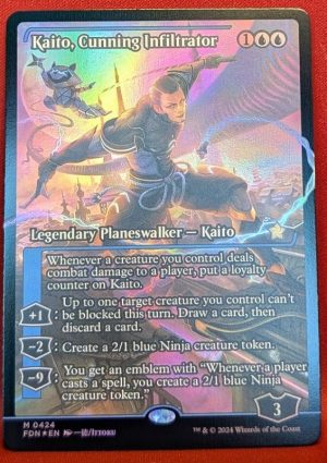[-9]: You get an emblem with “Whenever a player casts a spell, you create a 2/1 blue Ninja creature token.”