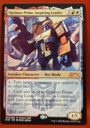 1: Until end of turn, Optimus Prime, Inspiring Leader becomes a Construct with base power and toughness 6/6 and creatures you control gain trample.