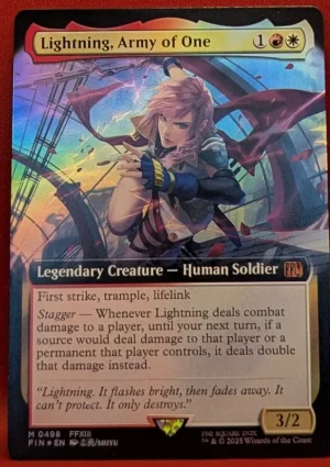Stagger — Whenever Lightning deals combat damager to a player, until your next turn, if a source would deal damage to that player or a permanent that player controls, it deals double that damage instead.
