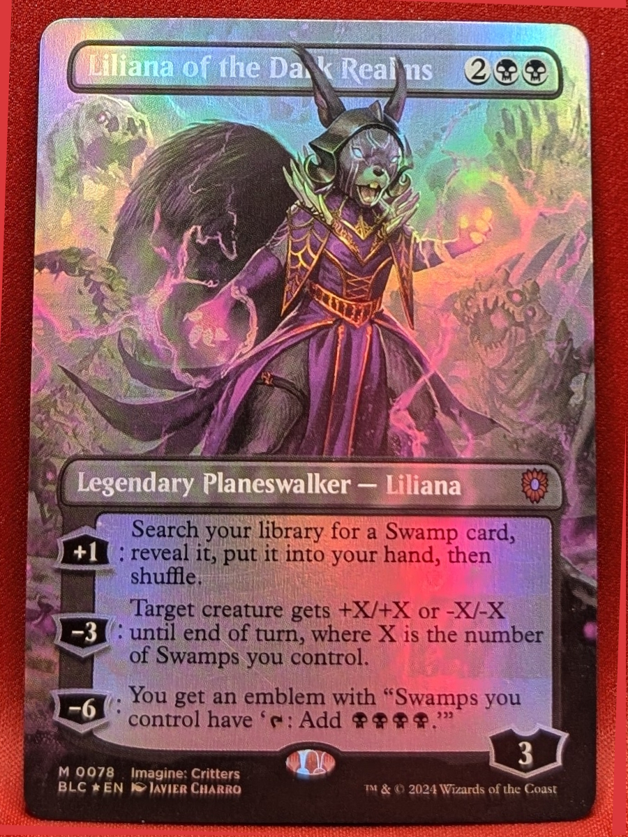 FOIL Liliana of the Dark Realms (Borderless) from Commander: Bloomburrow Magic the Gathering Proxy