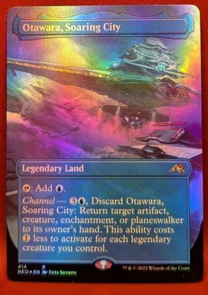 Channel — 3U, Discard Otawara, Soaring City: Return target artifact, creature, enchantment, or planeswalker to its owner’s hand. This ability costs 1 less to activate for each legendary creature you control.