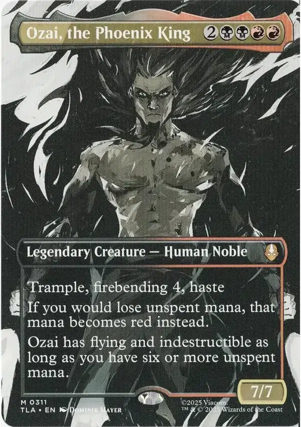 Ozai has flying and indestructible as long as you have six or more unspent mana.