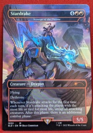 Whenever Stardrake attacks for the first time each turn, if it’s attacking the player with the most life, untap all attacking creatures. After this phase, there is an additional combat phase.