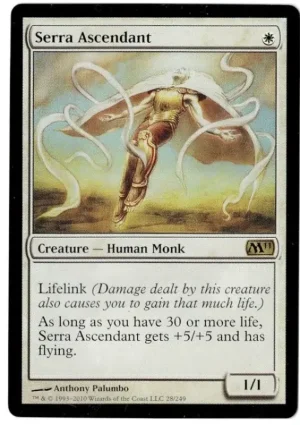 As long as you have 30 or more life, Serra Ascendant gets +5/+5 and has flying.