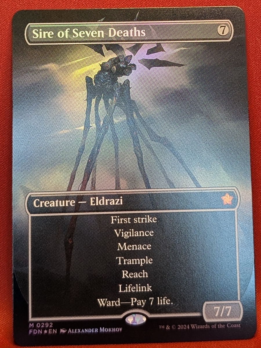 FOIL Sire of Seven Deaths (Borderless) from Foundations Magic the Gathering Proxy