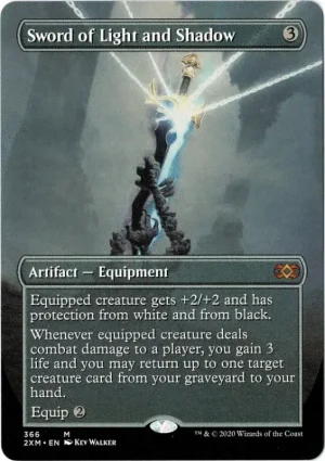 Equipped creature gets +2/+2 and has protection from white and from black.