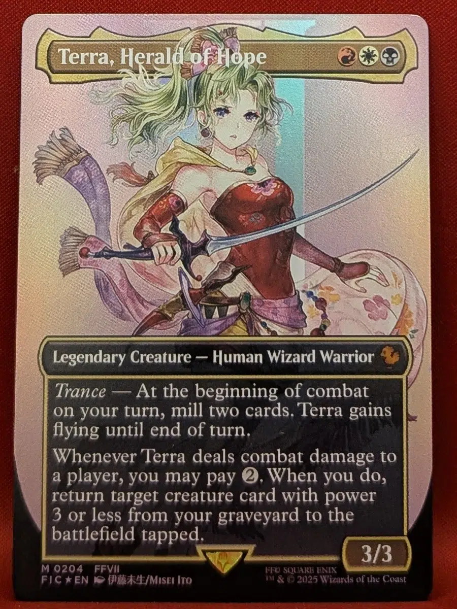 FOIL Terra, Herald of Hope (Borderless) from Commander: FINAL FANTASY Magic the Gathering Proxy