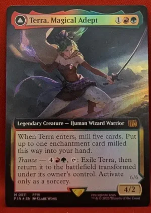 When Terra enters, mill five cards. Put up to one enchantment card milled this way into your hand.