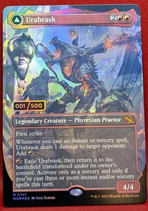 R: Exile Urabrask, then return it to the battlefield transformed under its owner’s control. Activate only as a sorcery and only if you’ve cast three or more instant and/or sorcery spells this turn.