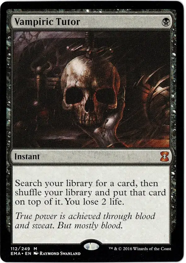 Search your library for a card, then shuffle your library and put that card on top of it. You lose 2 life.