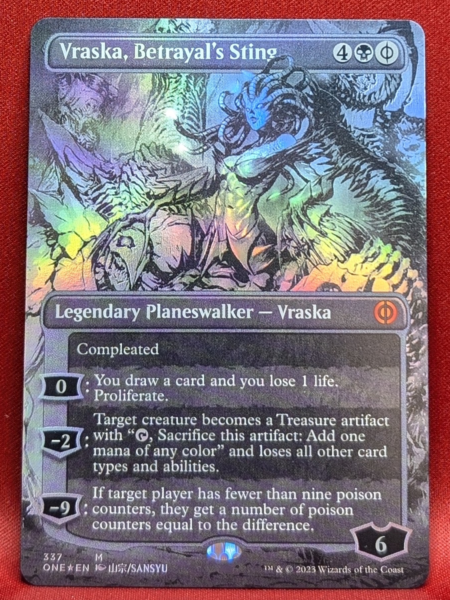 FOIL Vraska, Betrayal’s Sting (Borderless) from Phyrexia: All Will Be One Magic the Gathering Proxy