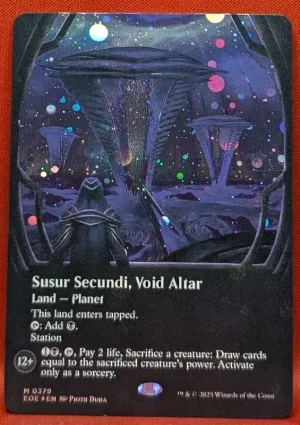 [12+] 1B, T, Pay 2 life, Sacrifice a creature: Draw cards equal to the sacrificed creature’s power. Activate only as a sorcery.