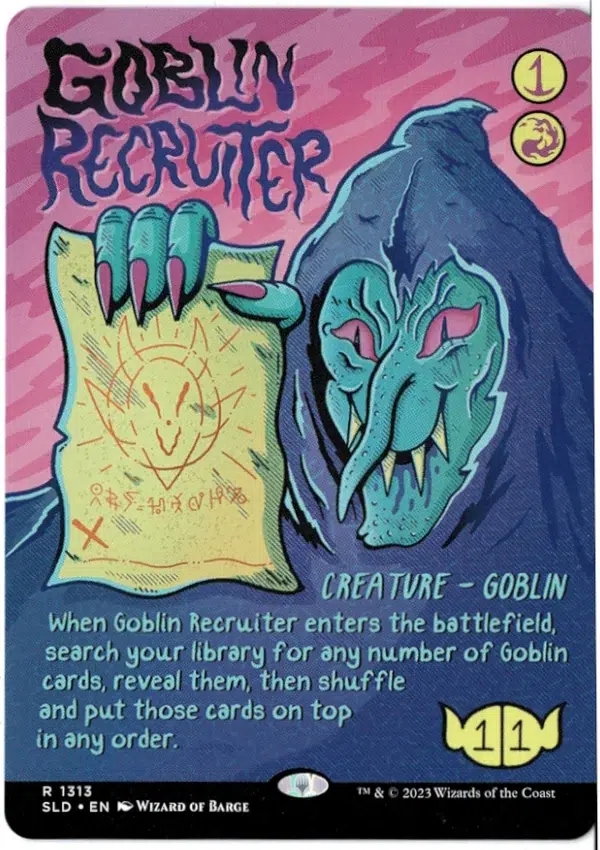 When Goblin Recruiter enters the battlefield, search your library for any number of Goblin cards, reveal them, then shuffle and put those cards on top in any order.