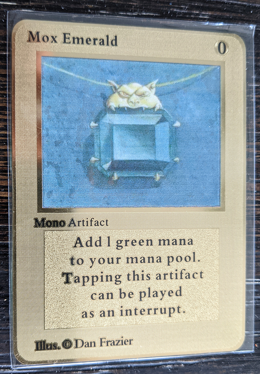 These high quality replica collectors cards are stainless steel with rose gold colored plating. They are silk screen/offset printed for high quality coloring and lettering. They make a great collectible to put on your shelf, or an awesome conversation piece in your Magic or Pokemon game as a placeholder on the playing field. They are the same size (63mmX88mm) as a regular Magic or Pokemon card and have the game card back.