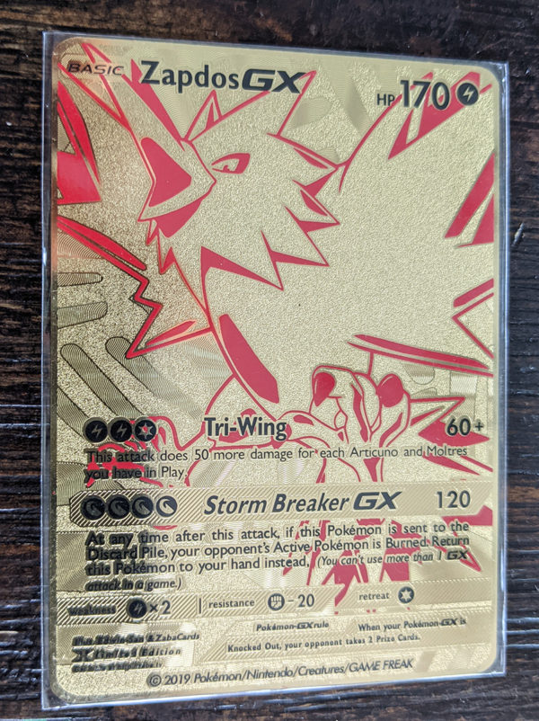 These high quality replica collectors cards are stainless steel with rose gold colored plating. They are silk screen/offset printed for high quality coloring and lettering. They make a great collectible to put on your shelf, or an awesome conversation piece in your Magic or Pokemon game as a placeholder on the playing field. They are the same size (63mmX88mm) as a regular Magic or Pokemon card and have the game card back.