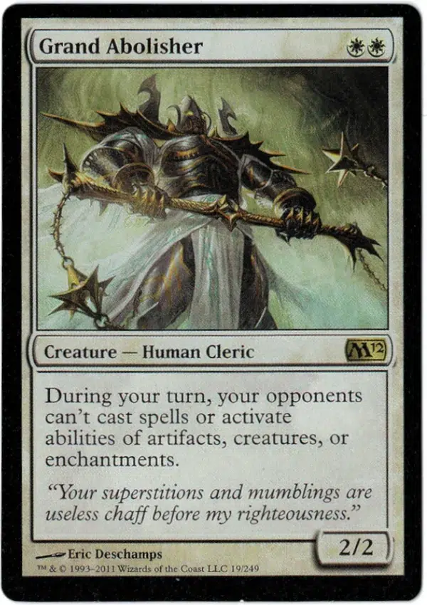 During your turn, your opponents can’t cast spells or activate abilities of artifacts, creatures, or enchantments.
