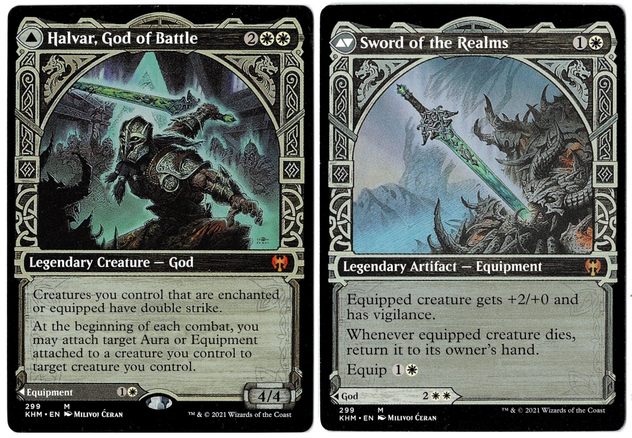 Halvar, God of Battle (Showcase) / Sword of the Realms from Kaldheim Magic the Gathering Proxy
