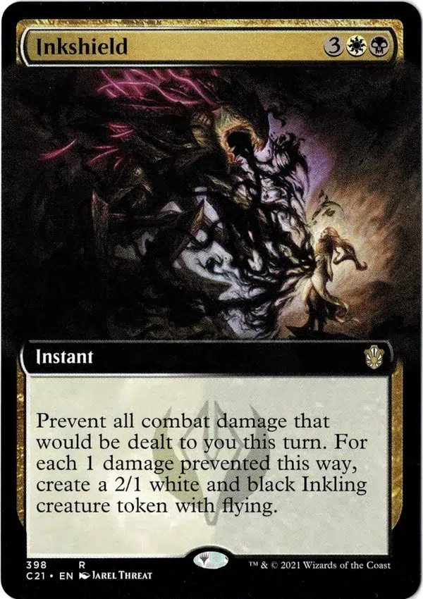 Prevent all combat damage that would be dealt to you this turn. For each 1 damage prevented this way, create a 2/1 white and black Inkling creature token with flying.