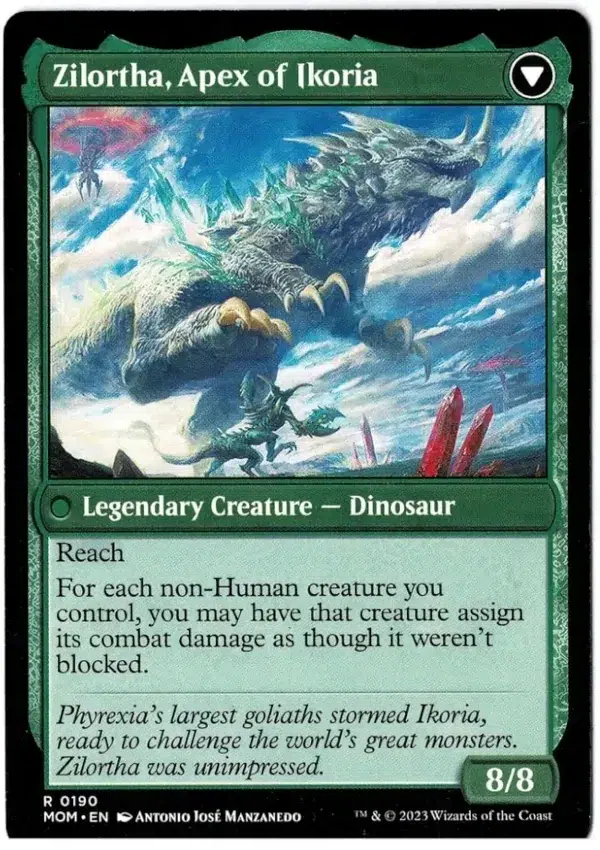 Flavor: Phyrexia’s largest goliaths stormed Ikoria, ready to challenge the world’s great monsters. Zilortha was unimpressed.